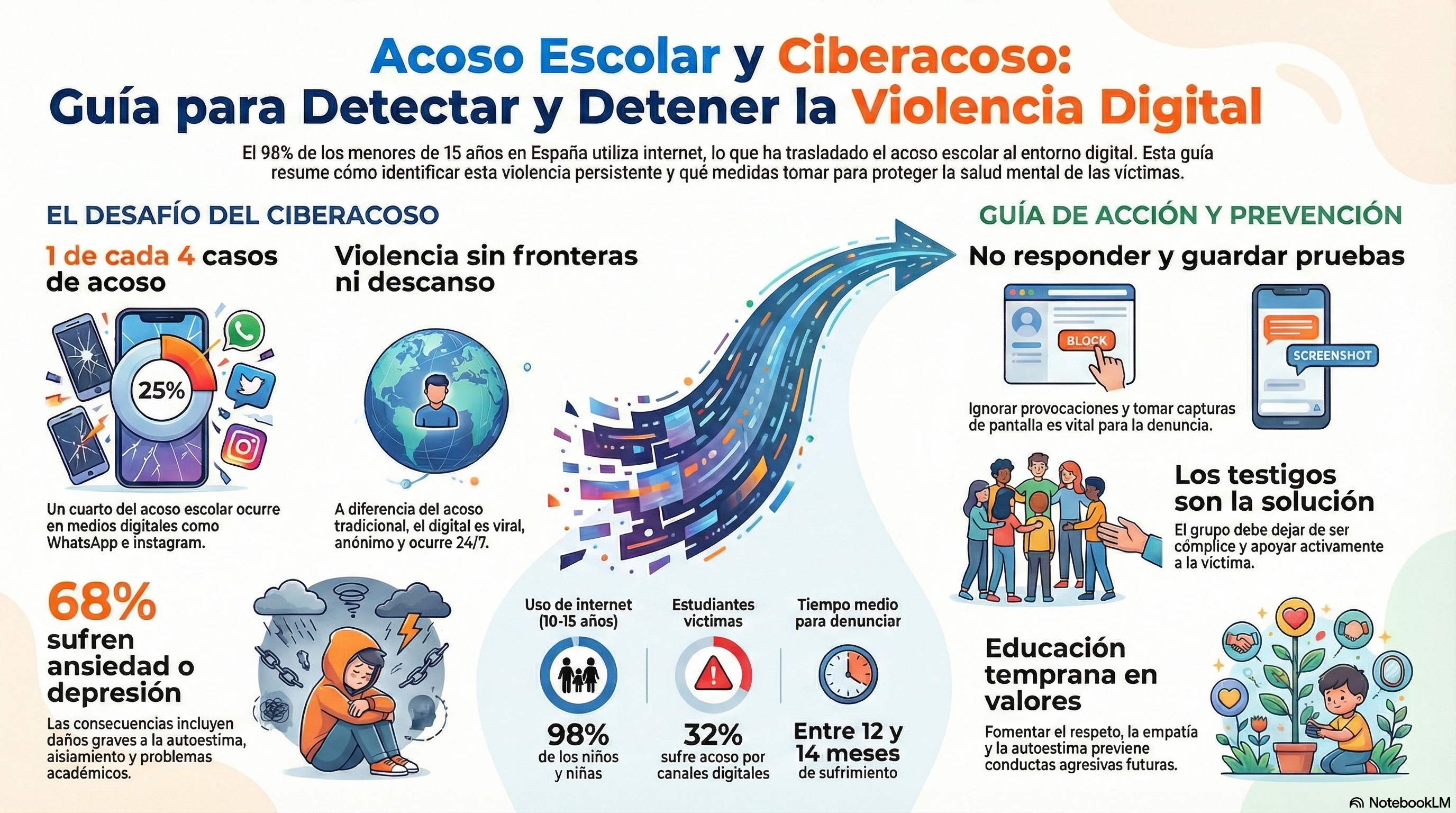 Infografía sobre el acoso escolar y el ciberacoso.